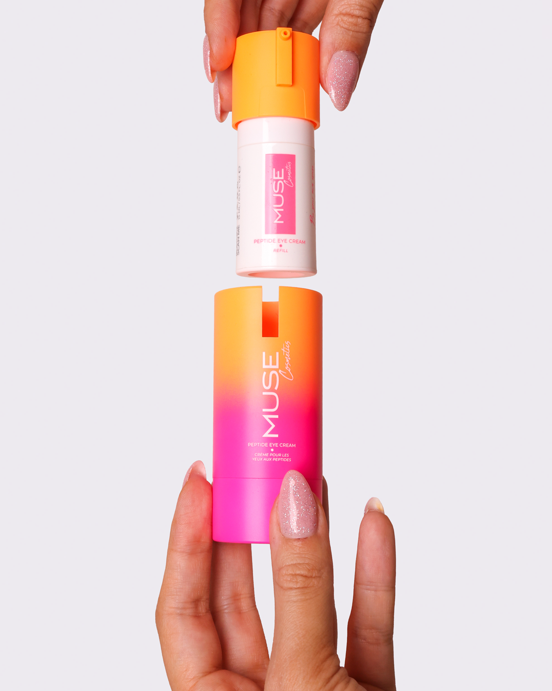 Опаковка със сменяем пълнител (refill), създадена да намали излишната употреба на пластмаса и да предложи по-устойчива грижа за кожата.